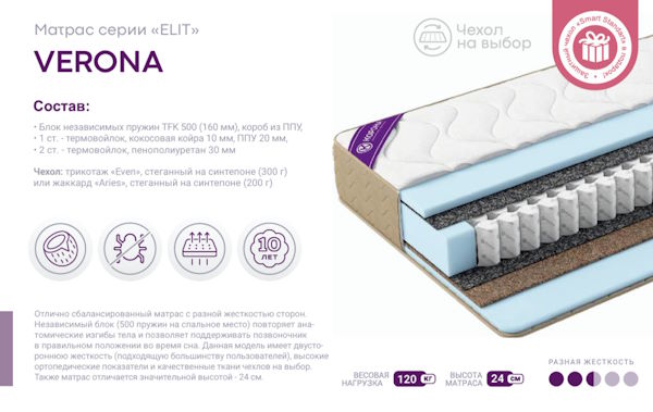 Ортопедический матрас средней жесткости, имеющий в составе латексированную кокосовую койру. Более доступный вариант модели Elit «Medium», меньшей высоты и незначительно меньшей жесткости.