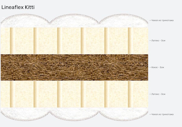 Благодаря латексному наполнителю Китти феноменально точно адаптируется под форму человеческого тела, что позволяет обеспечивать правильную циркуляцию крови в организме. Ткань для изготовления чехла была подвержена противобактериальной и антистатической обработке, что делает невозможным появление грибков и микробов. Стежка – 100% гипоаллергенный терморегулируемый холлофайбер.
