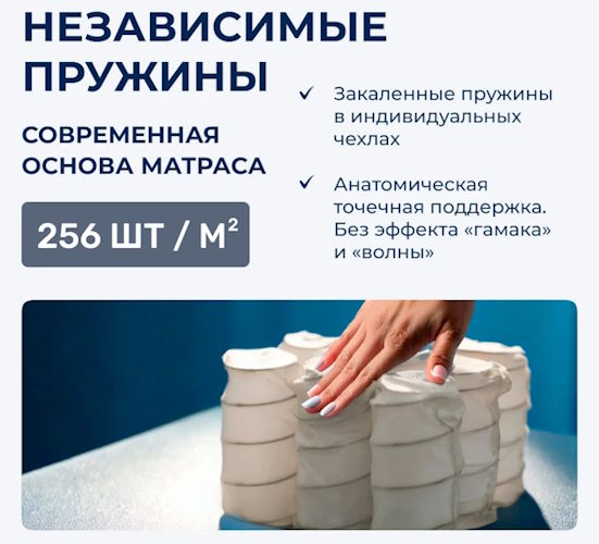 Подпись к товару Max. вес на спальное место - 140 кг, С независимыми пружинами, любой размер матраса