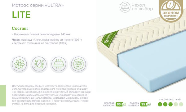 | Высота матраса | 14-15 см |