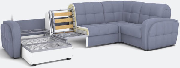 Огромный выбор размеров и типов модулей позволяет составить диван для любого помещения. На диване удобно сидеть и спать: механизм аккордеон при раскладывании образует высокое ровное спальное место, по комфорту сравнимое с настоящими кроватями. Все модули могут быть исполнены с матрасами ППУ или НПБ высотой 12 см (исключение угловая секция — только с НПБ).